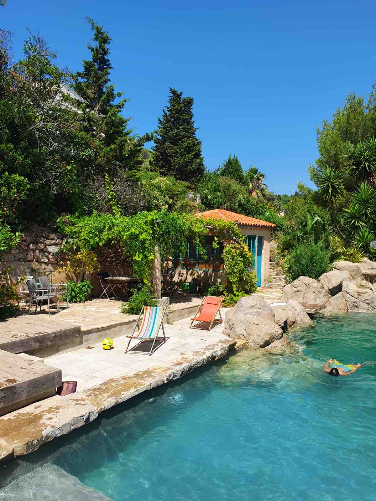 Untuk penginapan berhampiran Montpellier dan Sète, dua bandar yang indah di Selatan Perancis. "Suite utama" ialah bilik tidur utama dengan dua bilik mandi peribadi, menawarkan privasi dan keselesaan. Idea dapur yang lengkap sesuai untuk menyediakan makanan anda, manakala akses kepada kolam renang, taman persendirian, dan teres yang terletak di atas pokok menawarkan banyak pilihan bersantai di luar. Akhir sekali, tab mandi air panas menambah sentuhan kemewahan untuk berehat sepenuhnya.