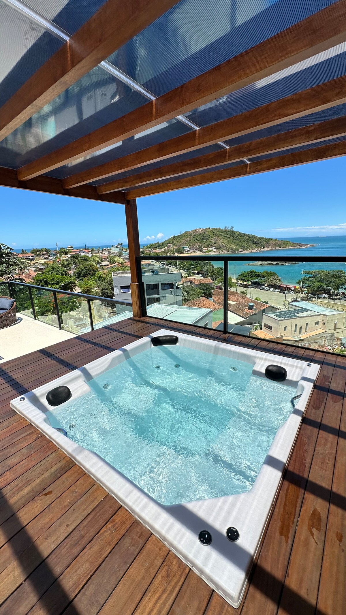 Conforto, luxo e tranquilidade. Isso você encontra em nosso apartamento que foi cuidadosamente projetado para lhe proporcionar uma experiência inesquecível com o MAR. Nesse ambiente arquitetônico clean, moderno, tecnológico e sofisticado você poderá usufruir da sensação de estar em um navio em alto mar. Você merece ter essa experiência! Sinta o cheirinho do churrasco com essa bela vista enquanto relaxa em nosso balanço panorâmico. Você não vai se arrepender!