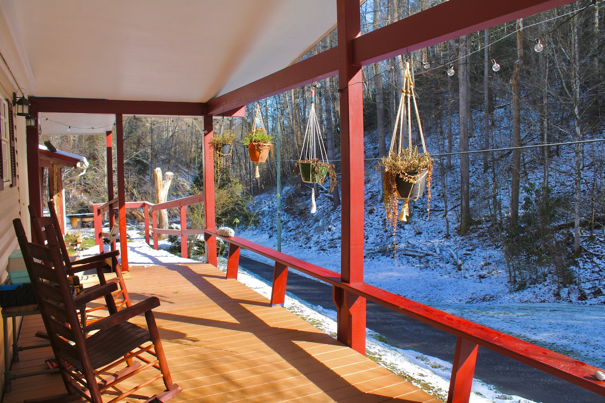 NOTA: Kami 3 minit dari GSMNP, bukan 40 minit seperti yang dinyatakan oleh Airbnb. Selesa & selesa, dengan bilik untuk 3 orang tetapi sesuai untuk 2 orang. Menghadap Sungai Kecil dan terletak di laluan berjalan kaki/berbasikal di bandar. Kurang daripada 1 batu ke Great Smoky Mtns. Taman Negara, di seberang sungai dari Laluan Basikal Vee Hollow. Akses sungai di penginapan (anak tangga ke sungai mungkin sukar bagi sesetengah orang.) Perlukan lebih banyak bilik? Tempah kedua-dua Casa Caboose dan Cabin of Lost Soles. Lihat penyenaraian kami yang lain di sebelah: Casa Caboose