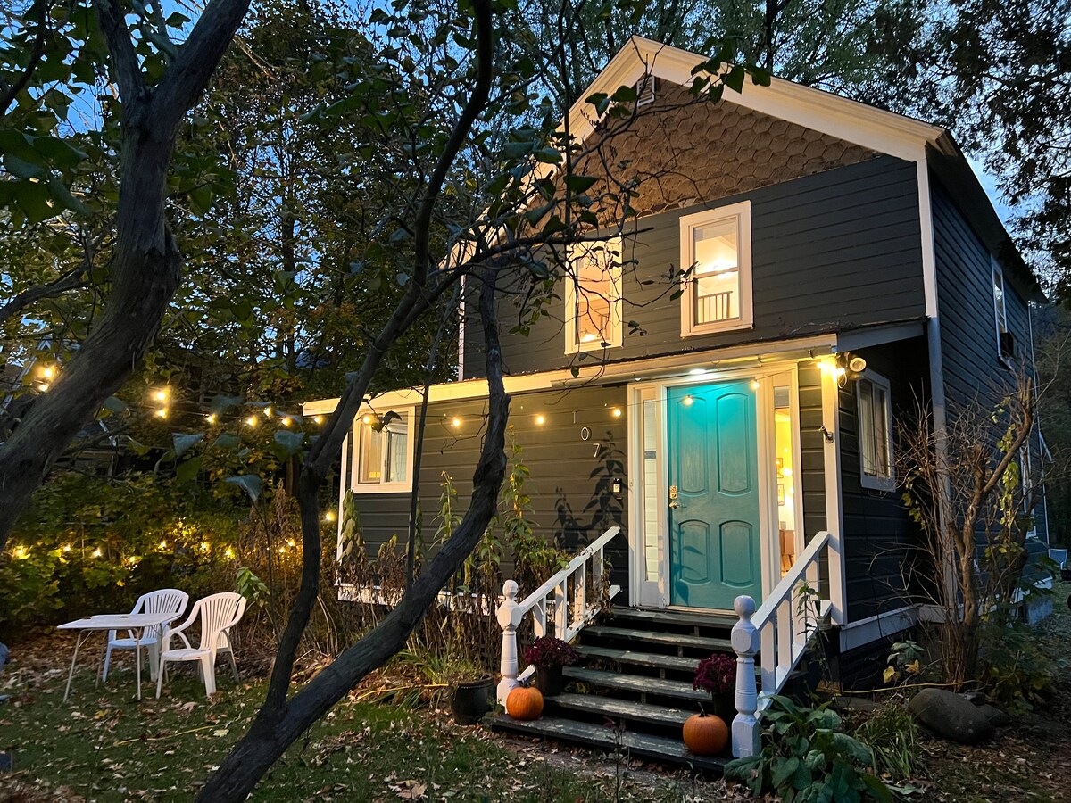 Bright Cozy Apt di tengah-tengah Margaretville Village menampilkan katil bersaiz queen di loteng tidur yang selesa, sofa juga terbuka kepada saiz twin. Siling berkubah memberikan ruang ini suasana yang lapang, anda boleh memasak dan menonton saluran penstriman kegemaran anda di wifi, atau pergi bersiar-siar untuk makan malam. Kami berada dalam jarak berjalan kaki dari semua kemudahan, mendaki, memancing, barangan antik, membeli-belah, kafe dan banyak lagi. Kami berhampiran dengan Ski, Memancing, Mendaki, Tempat Perkahwinan, dan semua yang ditawarkan oleh Catskills.