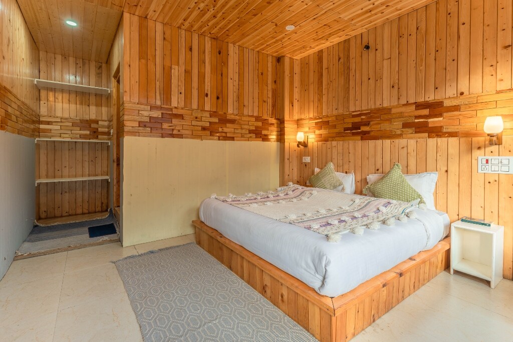 🏡 Hayati ketenangan gunung di Rubaroo - tempat yang anda akan suka berada ❤️ Bersantai di kotej kayu kami yang luas yang menampilkan katil mewah bersaiz king dan balkoni berbentuk L yang unik dengan dua pintu masuk. Terletak di tingkat satu vila gunung kami, bilik anda menawarkan pemandangan matahari terbit di samping puncak yang jauh. Alami gabungan sempurna pesona desa dan keselesaan. Nikmati makanan yang dimasak di rumah, malam yang diterangi bintang✨, dan hospitaliti gunung yang tulen di kampung kami yang tenang berhampiran Jibhi 🌄