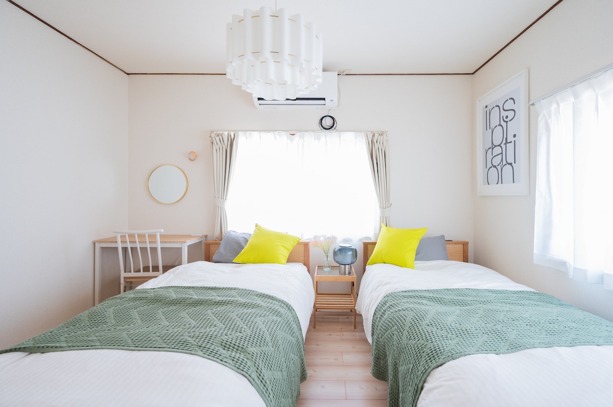 3 minit ke tepi tasik Seishin, bilik persendirian dengan katil berkembar