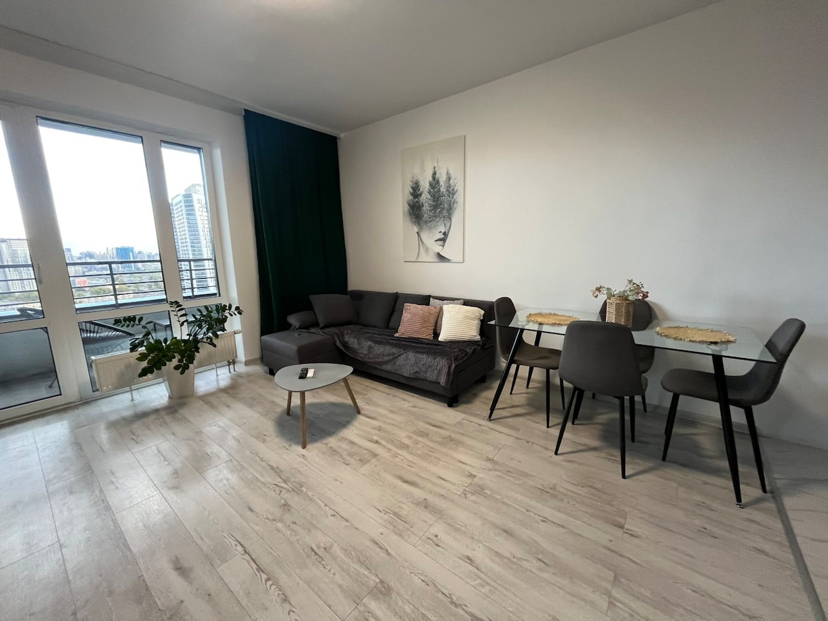 Квартира розташована на 22 поверсі, з якого відкривається мальовничий вид на Київ. Тут все влаштовано для комфортного відпочинку. Але і для роботи є 2 зручних місця та Gbit WiFi. В квартирі є 2 окремі кімнати, одна з яких перетворється в простору кухню-вітальню. Багато варіантів освітлення забезпечують додатковий комфорт. Квартира знаходиться в Солом’янському районі. До центру міста їхати 15 хвилин, до найближчої транспортної роз’вязки 700 метрів, що забезпечує тишу від галасливого міста.