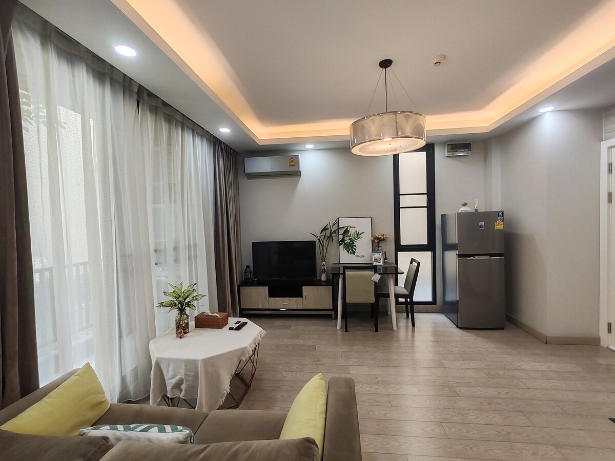 Apartmen 51sq/m satu bilik tidur baharu yang selesa di pusat bandar Chiang Mai ini sesuai untuk keluarga tunggal, pasangan, atau keluarga kecil, dengan semua yang anda perlukan untuk penginapan anda di Chiang Mai. Kondominium ini mempunyai bilik katil berasingan dengan katil King (tilam lembut) ruang tamu mempunyai katil sofa. Terletak di hab pelancongan, anda berada dalam jarak berjalan kaki ke Bazar Malam dan 10 minit berjalan kaki ke dinding Bandar Lama. Terokai jalan dan lorong dengan mudah dari pangkalan pusat ini dengan berjalan kaki. Semua dialu-alukan untuk menginap.
