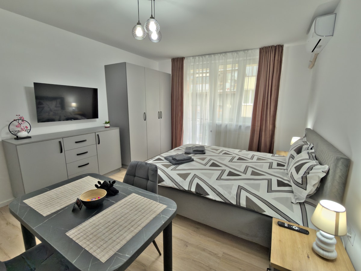 Selamat datang ke apartmen mewah kami di Sibiu! Unit ini dilengkapi dengan hiasan moden dan selesa, memastikan penginapan yang tidak dapat dilupakan. Tetamu kami boleh menikmati sauna persendirian, sesuai untuk berehat selepas seharian bersiar-siar. Tetapi apa yang benar-benar membezakan kami ialah pemandangan pusat bersejarah yang menakjubkan. Anda boleh menikmati secawan kopi atau segelas wain sambil menikmati pemandangan yang menakjubkan dari keselesaan rumah anda sendiri. Tempah sekarang dan alami yang terbaik yang ditawarkan oleh Sibiu!