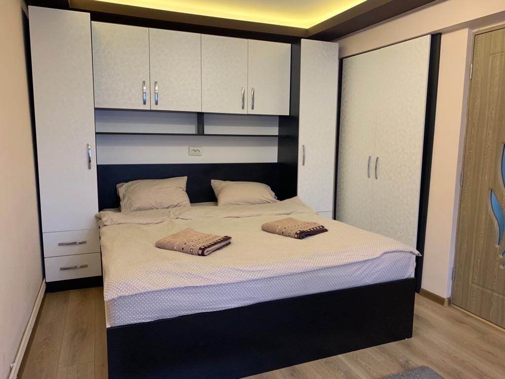Ia adalah apartmen yang luas, selesa , berperabot moden dengan dua bilik tidur , ruang tamu yang luas, dapur, bilik mandi dengan tab mandi , balkoni dengan pemandangan yang menawan Ia terletak di 1, 8km dari Piata Mare .