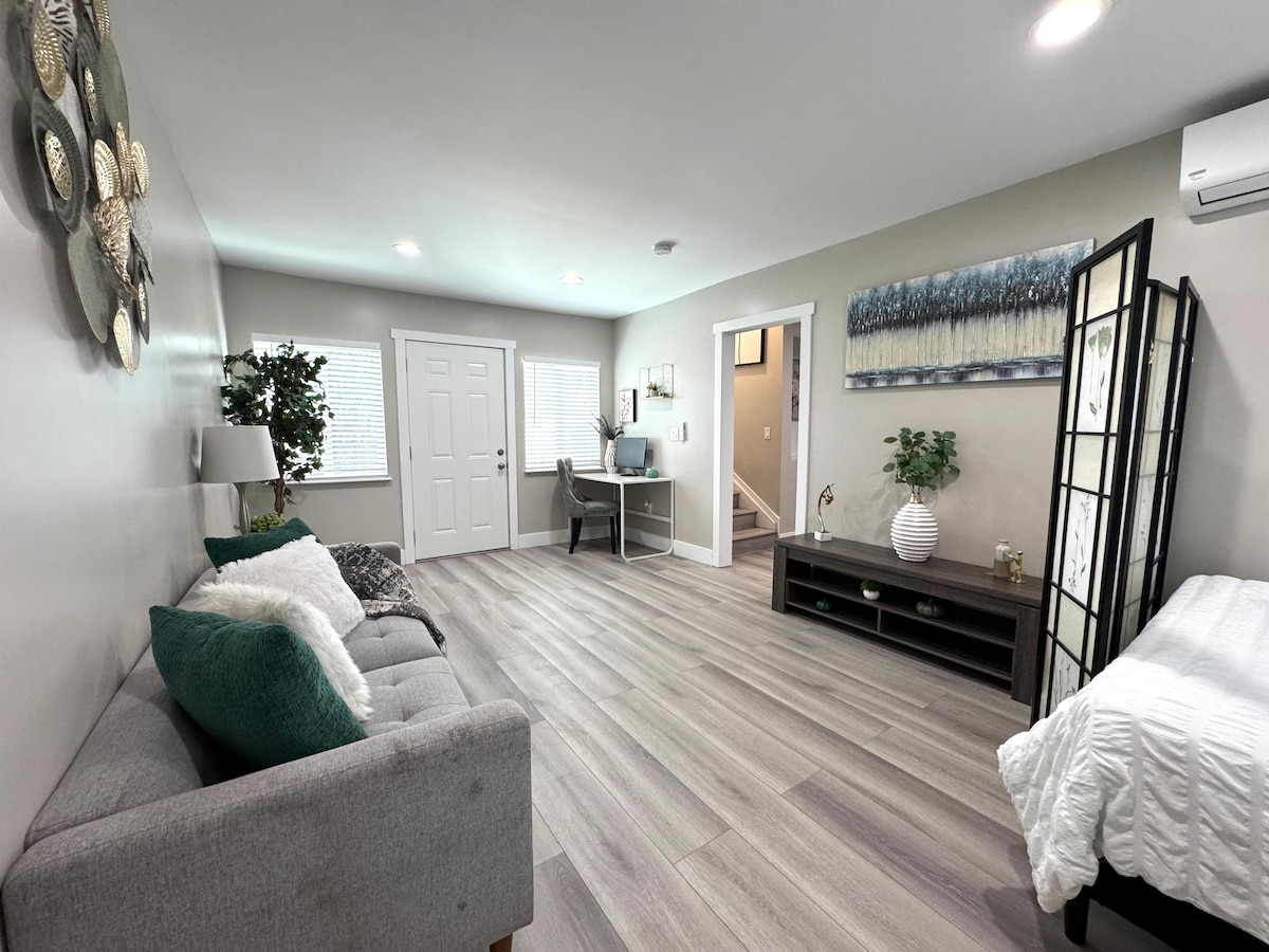 Diubah suai sepenuhnya pada tahun 2022, semuanya baharu. Kondominium tingkat 2 yang bergaya ini menghadap Santana Row yang meriah - permata Silicon Valley/Kawasan South Bay dengan restoran, membeli-belah, filem, spa, salon, dan banyak pilihan hiburan yang hebat di tingkat bawah. Terdapat 1 katil queen, 1 katil twin dan 2 sofa besar. Seluruh ruang telah diubah suai - dapur, bilik mandi, lantai, cat, lampu dan semua peralatan baru. WiFi berkelajuan tinggi dan TV pintar skrin besar.