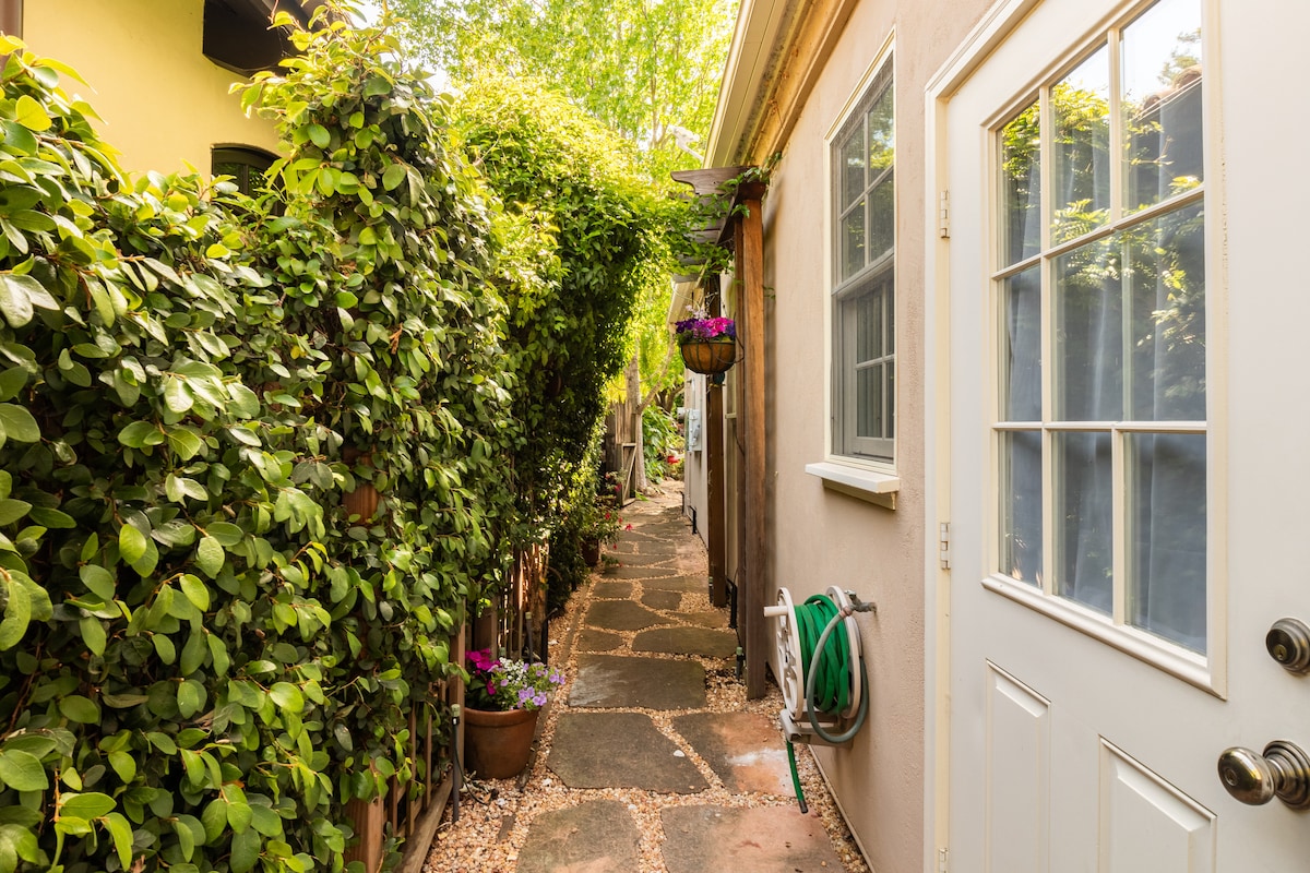 Baru-baru ini dicat, rumah tetamu gaya Mediterranean kami yang tenang, selamat, sangat bersih dan menarik, terletak di halaman landskap di bawah pokok Redwood, dan sesuai untuk hanya 1 tetamu. Anda boleh berjalan kaki dengan mudah ke kafe kejiranan Midtown, kedai makan dan pasar yang hebat. Akses kampus Stanford, syarikat Silicon Valley, kawasan Membeli-belah San Antonio, dan Stesen Caltrain California Ave dengan cepat dengan kereta. Anda dialu-alukan untuk menikmati halaman belakang kami, tidur siang di buaian rajut atau bekerja di patio dengan akses WiFi.
