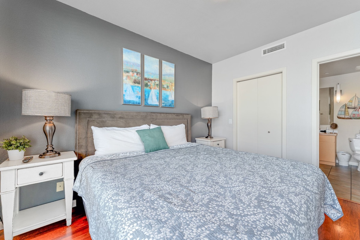 Unit tingkat atas, tiada sesiapa di atas anda! Kondominium gaya butik persendirian yang baru diubahsuai dengan penyaman udara pusat ini adalah percutian yang sempurna untuk 1-4 tetamu. Terletak bersebelahan dengan Lakeside Park, berhampiran pusat Chelan. Termasuk tempat letak kereta percuma, WiFi pantas, kolam renang komuniti dan sauna, dan dapur dan bilik mandi yang dilengkapi dengan teliti. Terletak di tengah-tengah, hanya beberapa saat dari tasik, dengan akses pantas ke ladang anggur, golf, memancing, sukan air, mendaki, membeli-belah, dan banyak lagi! Perlukan hanya 1 malam? Hantar mesej kepada saya untuk ketersediaan.