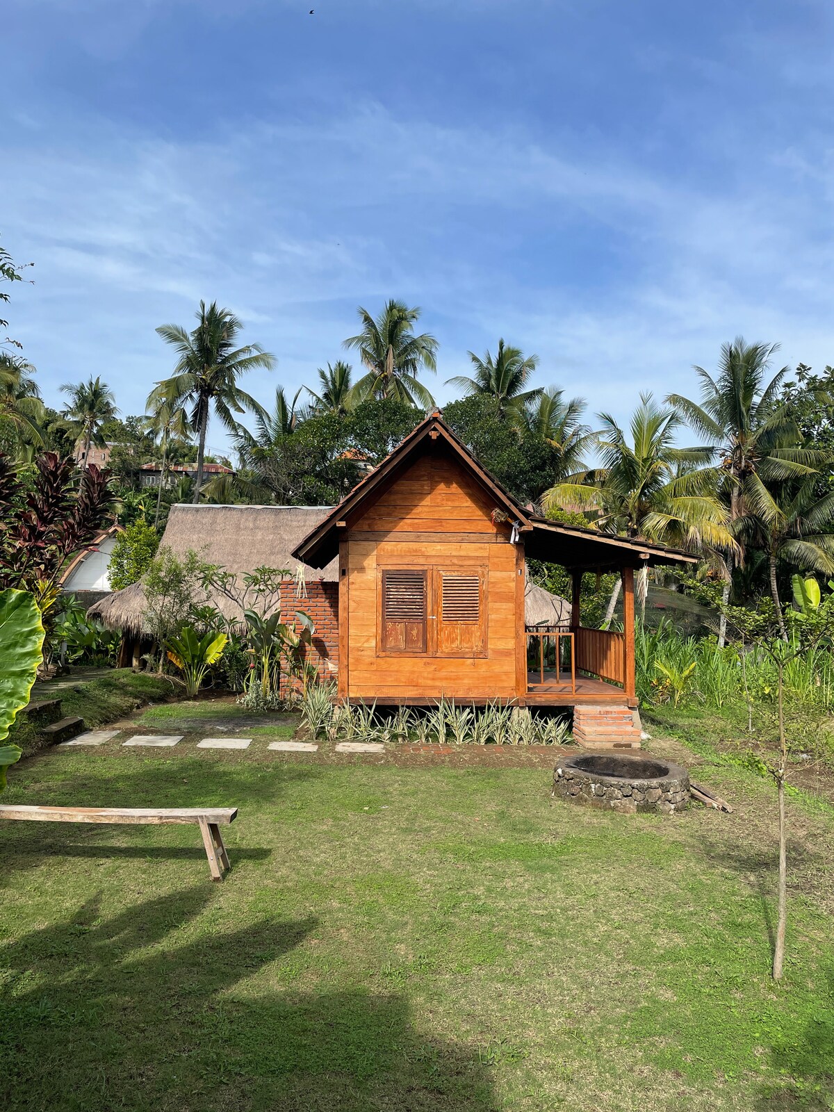 Rumah kayu eko terletak sangat dekat dengan Air Terjun Aling Aling. Ia hanya mengambil masa 5 minit dengan berjalan kaki ke air terjun. Dan juga ia dekat dengan sungai, jika anda suka kedamaian bunyi sungai, anda pasti akan menyukainya. Katil selesa dan bersih dengan kelambu nyamuk, bilik mandi separa terbuka dengan bahan mesra alam. Balkoni tersedia menghadap pemandangan sawah. Wifi tersedia di kawasan awam. Sarapan dimasukkan ke dalam harga.