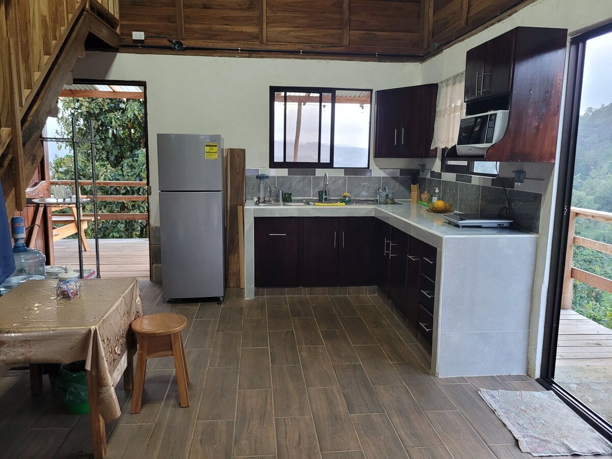 Rumah kecil di atas bukit, pemandangan yang mengagumkan (360°) lokasi kami sesuai jika anda mengembara dari Pantai ke Pantai atau jika anda akan berakit di Sungai Pacuare yang menakjubkan, tempat-tempat menarik yang berdekatan seperti; Gunung Berapi Turrialba, Tortuguero, Taman Negara Barbilla. Kami mempunyai tempat letak kereta di sebelah rumah kami dan laluan ke puncak bukit adalah 400 meter, kami mengesyorkan untuk mengemas apa yang anda perlukan untuk penginapan anda, apa yang ditinggalkan di dalam kereta selamat, ini adalah tempat yang sangat tenang dan selamat.
