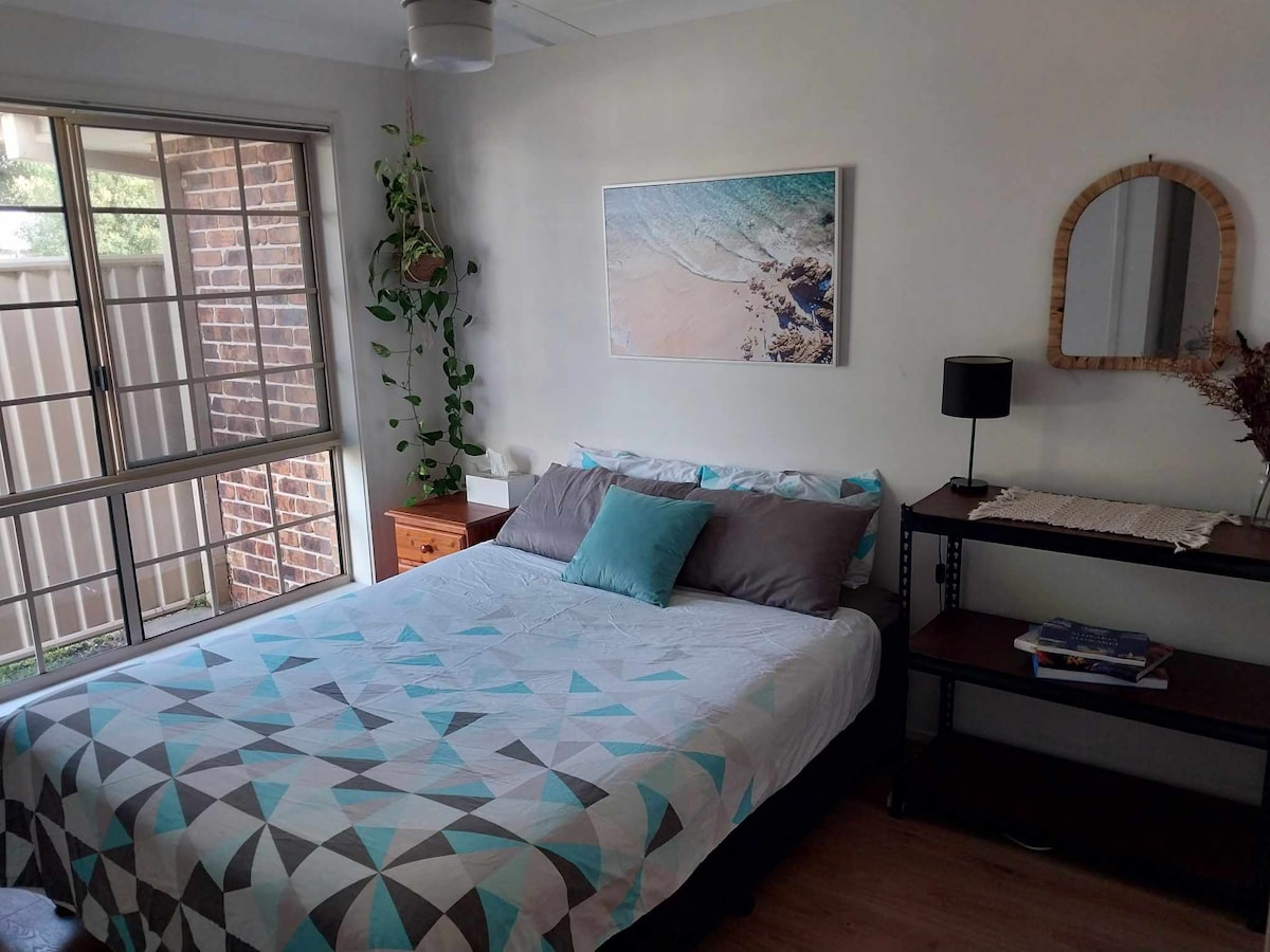 Dicipta di dalam rumah kami, ruang tetamu kami mempunyai katil saiz Queen yang selesa & bilik mandi berjubin yang menghadap halaman persendirian; kemudahan termasuk pendingin hawa, TV, peti sejuk, cerek, ketuhar gelombang mikro & pembakar roti (tiada dapur) Berjalan kaki sebentar ke pantai berenang sungai & 5 minit memandu ke pantai laut yang menakjubkan. Kafe, restoran, kedai & kolam renang utama Ballina hanya 10 minit berjalan kaki. Akses adalah melalui pintu masuk persendirian (melalui pintu roller) ke lobi di mana peti keselamatan kunci terletak. Sila ambil perhatian: Masa Daftar Masuk Terkini 9 malam