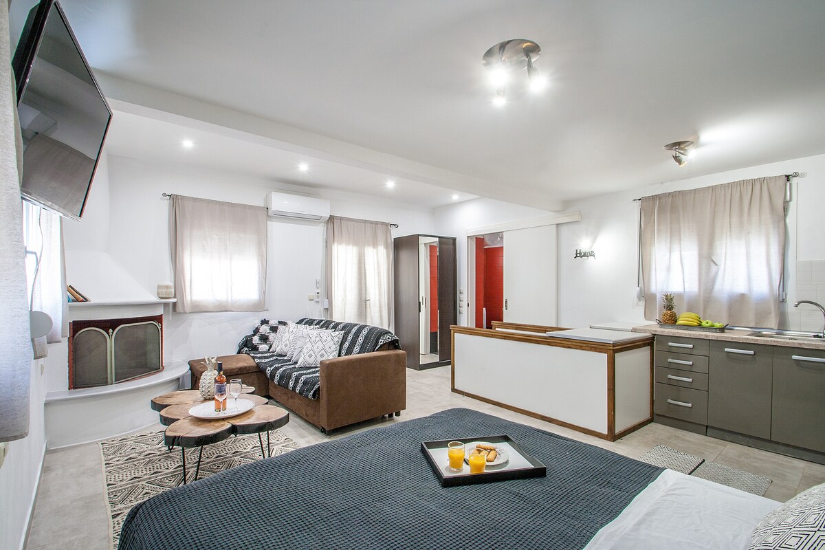 Studio Moden dengan Pemandangan Pelabuhan Cantik di Bandar Skiathos Alami pesona Skiathos dari studio moden baharu ini yang terletak betul-betul di pelabuhan. Nikmati pemandangan marina, bot dan orang yang lalu lalang. Di dalam, anda akan menemui katil double yang selesa, bilik mandi moden, dapur kecil dan ruang tamu yang selesa yang dilengkapi dengan TV skrin rata dan Wi-Fi. Sesuai untuk pasangan atau pengembara solo yang mencari keselesaan dan kemudahan di pusat bandar Skiathos.