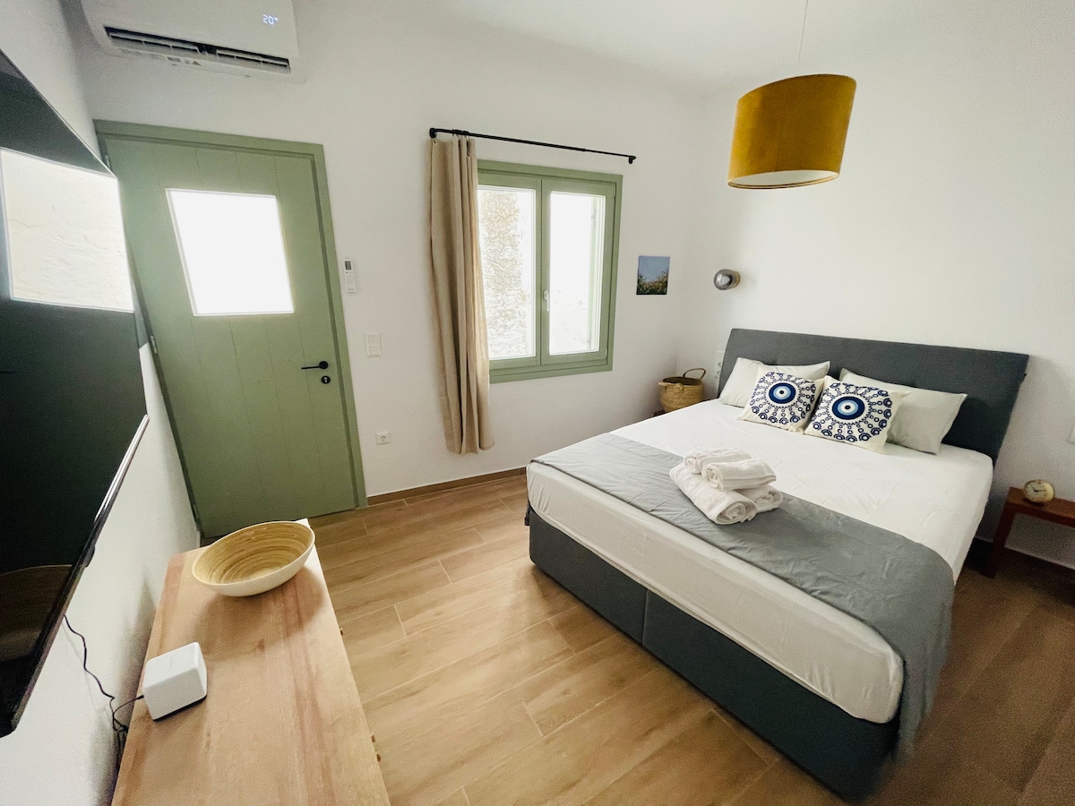 Live the dream at Onar House (78sqm) with stunning views of the Sea & Chora! Brand new, featuring a cozy living room, large dining area, full kitchen & A/C and TV in every room. Enjoy the blue horizon from our 2 terraces, with premium COCO-MAT mattresses. With private parking & just 5' from the market, luxury meets tradition where the entire Town and the Aegean Sea become your personal backdrop! An ideal, spacious retreat for an unforgettable stay. Welcome!