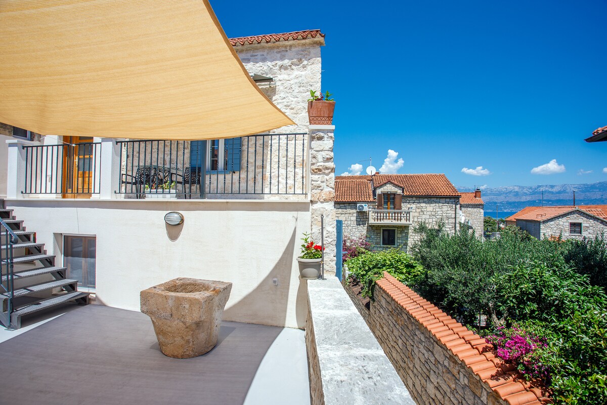 Apartmen ini terletak di sebuah rumah batu lama. Ia dibina dengan gabungan kayu dan batu dengan butiran menarik yang memberikan anda pengalaman berehat dan kenangan berharga. Apartmen Nona Marija terletak di Nerežišća pada ketinggian 340 meter di atas paras laut di tengah-tengah pulau. Lokasi unik yang jauh daripada orang ramai dan bunyi bising dengan iklim gunung yang segar membolehkan anda menikmati semasa bulan-bulan musim panas dan musim sejuk. Kolam renang apartmen sesuai untuk tetamu yang ingin meneroka pulau ini, melawat pantai dan tempat baharu setiap hari.