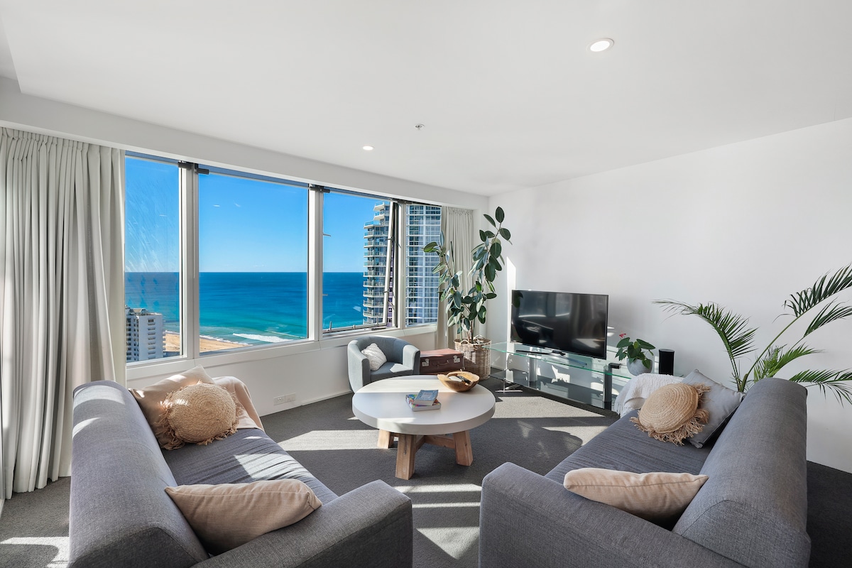 Datang & menginap dalam kemewahan tepi pantai persendirian! Kami terletak di hujung Selatan Surfers Paradise Central yang popular, di tingkat 12 dengan pemandangan tepi pantai 180° yang tidak terganggu, yang terletak di hujung tepi pantai Laycock St & The Esplanade. Kami berada DI esplanade TEPI PANTAI... Pemandangan pantai, lautan, dan matahari terbit yang menakjubkan tanpa gangguan dari SEMUA bahagian apartmen... Kami berbangga menjadi hos yang hebat & mengalu-alukan anda ke ruang kami yang terperinci & lengkap dan direka bentuk secara seni bina.