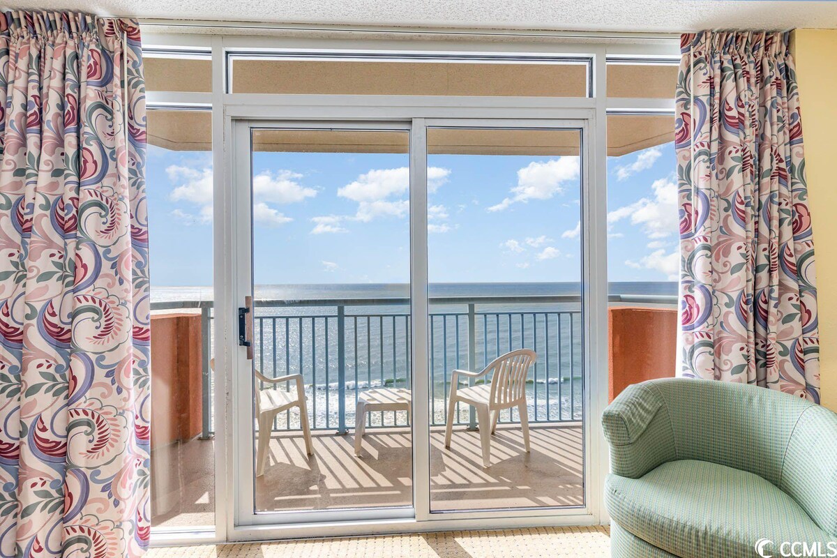 Telah diubahsuai sepenuhnya dengan perabot moden yang baru dan terletak di tengah-tengah Myrtle Beach, kondominium kami adalah unit tingkat empat dengan pemandangan tepi laut langsung yang menakjubkan dengan glider adirondack di balkoni kami! Kami mempunyai kolam renang dalaman dan luaran dan tab mandi air panas, halaman tepi laut yang penuh dengan kerusi rehat, dan meja dengan payung, TV kabel pelengkap dan wifi dan tidak ada kekurangan pantai berpasir dan pemandangan yang menakjubkan!