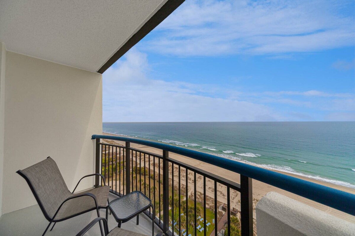 Kondominium depan laut yang digayakan dengan cantik dengan dinding kaca lantai ke siling untuk pemandangan Lautan Atlantik, pantai dan latar langit bandar yang menakjubkan. Bersantai di balkoni, lihat matahari terbit atau terbenam dari katil anda, berjalan di pantai, atau nikmati kolam renang, tab mandi air panas, sungai malas dan pendiangan. Hanya beberapa minit berjalan kaki dari jeti 2nd Ave baru, restoran, kedai serbaneka, sukan air/taman dan Family Kingdom. No Petets! Mesti berumur 21 tahun untuk mendaftar masuk.