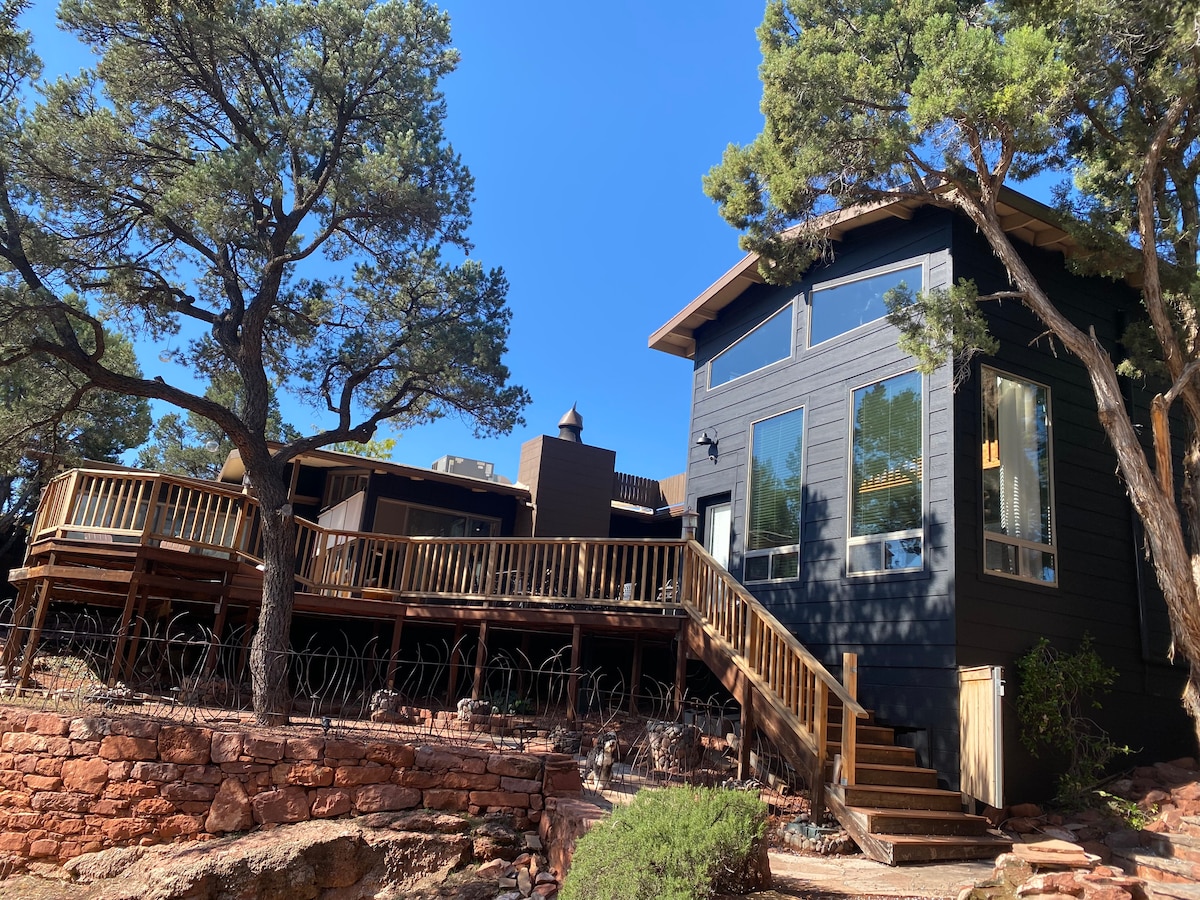 10/10 LOKASI YANG SEMPURNA dengan pemandangan di hampir setiap tingkap! Rumah bersejarah yang menakjubkan di tengah-tengah Sedona. 3 bilik tidur dengan pelan lantai berpecah - bilik tidur ke-3 mempunyai katil queen dengan katil lain/katil tarik keluar di loteng. 2000 SF di 1/3 ekar dengan tab mandi air panas, boleh berjalan ke restoran, membeli-belah, & terletak betul-betul di sebelah Tlaquepaque yang menakjubkan (5 minit berjalan kaki) & anak sungai! Di tengah-tengah segala-galanya namun terasa sangat peribadi. Beberapa langkah dari Denai Hiking Brewer. Pengecas Tesla percuma. Airbnb terbaik di Sedona oleh AZ Insider.