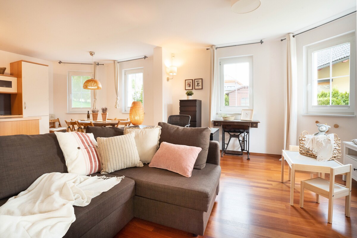 Tempat percutian kecil yang menawan menanti anda. Dapur dilengkapi dengan segala-galanya untuk makanan yang memukau—pembasuh pinggan, ketuhar gelombang mikro, peti sejuk mini, ketuhar, dapur, cerek, gril mini dan pembuat kopi. Di dalam, sofa lembut, TV, mesin basuh, almari pakaian dan peti besi memastikan anda selesa. Di luar, berenang di bawah langit, berehat di taman, atau nikmati barbeku ala cerita dongeng. Hanya 4 km dari Tasik Bled dan 32 km dari Lapangan Terbang Ljubljana.