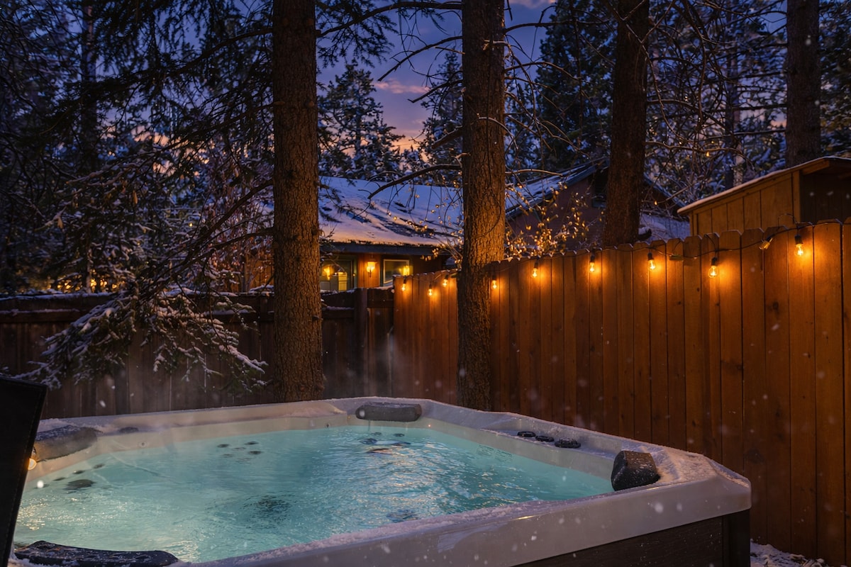 Langkah ke Puncak Salji! Kabin rumah pintar bergaya dengan tab mandi air panas persendirian, BBQ, kerusi urut dan pendiangan. 2BR/2BA tidur 7. Dapur lengkap dengan mesin basuh pinggan mangkuk, Keurig + pengisar. Wi-Fi pantas untuk penstriman/kerja, pengecasan EV (bawa kord anda) dan daftar masuk sendiri tanpa kunci yang mudah. Berjalan kaki ke lif, taman basikal, kafe; beberapa minit ke The Village, laluan dan tasik. Jalan yang tenang, tempat letak kenderaan khusus. Sesuai untuk keluarga, pasangan dan rakan-rakan yang mencari penginapan di tengah-tengah Big Bear Lake. Tempah trek pertama dan malam tab mandi air panas! Selamat menikmati