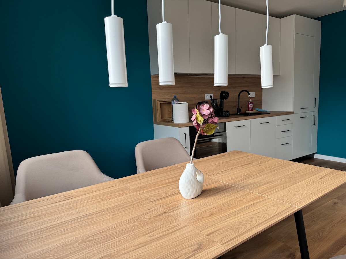 Berehat dan bersantai di tempat yang tenang dan bergaya ini. Kami telah menyediakan espresso dan teh yang aromatik untuk anda. Dapur dilengkapi dengan semua yang anda perlukan untuk memasak - ketuhar, dapur, peti sejuk, mesin kopi, pinggan mangkuk.