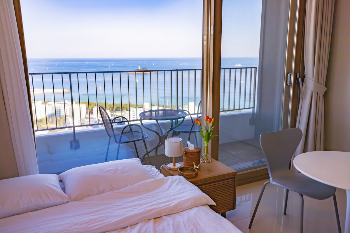 Pemandangan laut [Hotel + Pension] 1 minit ke pantai [Diskaun 20% untuk penginapan berterusan] Katil dengan pemandangan laut Sokcho|Pasar Pusat Diskaun untuk menginap seminggu