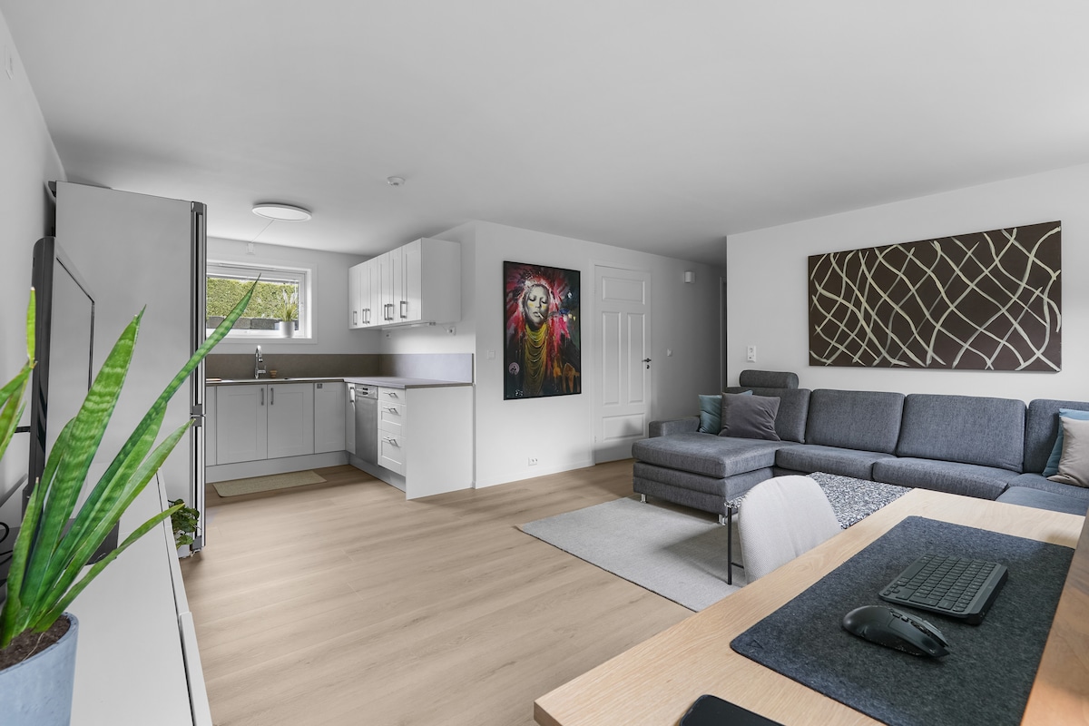 Cozy basement apartment (2009) in a quiet, family-friendly area. Only 50 m to bus with great connections to Stavanger, UiS, SUS and Sandnes. 5 min to the airport and Sola Beach. 10–15 min to Stavanger city center, Sandnes and Kvadrat shopping center. Walking distance to gym and Velodrome. One bedroom with a wall-to-wall bed (180×200 cm) and a sofa bed in the living room (140×200 cm). Perfect for work stays, holidays or longer rentals, with a comfortable and convenient location.