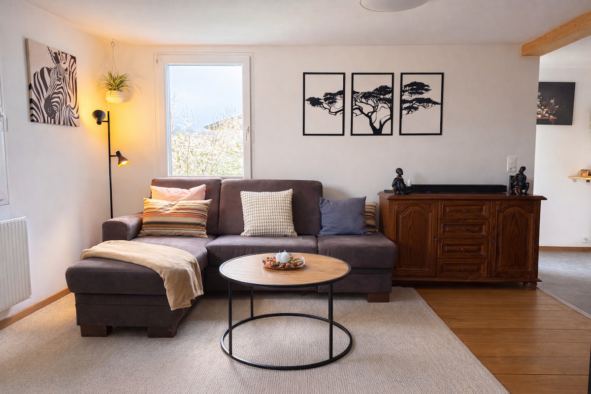 Selamat datang ke apartmen yang selesa dan damai di Eriswil, sesuai untuk pasangan atau pengembara solo yang ingin berehat. Nikmati malam yang selesa dengan menonton filem menggunakan projektor pawagam rumah, atau berehat di dalam tab mandi selepas seharian meneroka kawasan luar bandar. Untuk berseronok, tetamu boleh menikmati permainan seperti dart, ping pong atau bola sepak meja. Di belakang rumah, anda akan menemui kawasan luar yang tenang di mana anda boleh berehat atau menikmati barbeku. Sesuai untuk berehat dan menikmati penginapan anda.