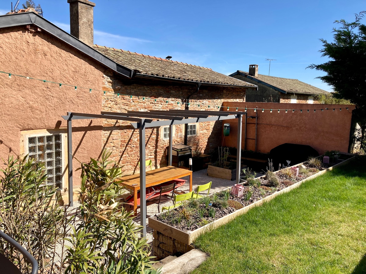 Rumah desa yang hangat dan tenang. Nikmati penginapan di kawasan hijau dengan pemandangan alam semula jadi yang tidak terhalang. Sedia membantu anda, di 2 tingkat, 2 bilik tidur dengan katil kelamin, katil sofa kelamin dan dua katil single di atas mezzanine. Akses kepada denai hiking boleh dilakukan terus dari penginapan. Datang dan isi semula bateri anda dan nikmati jarak yang dekat dengan rantau Beaujolais.