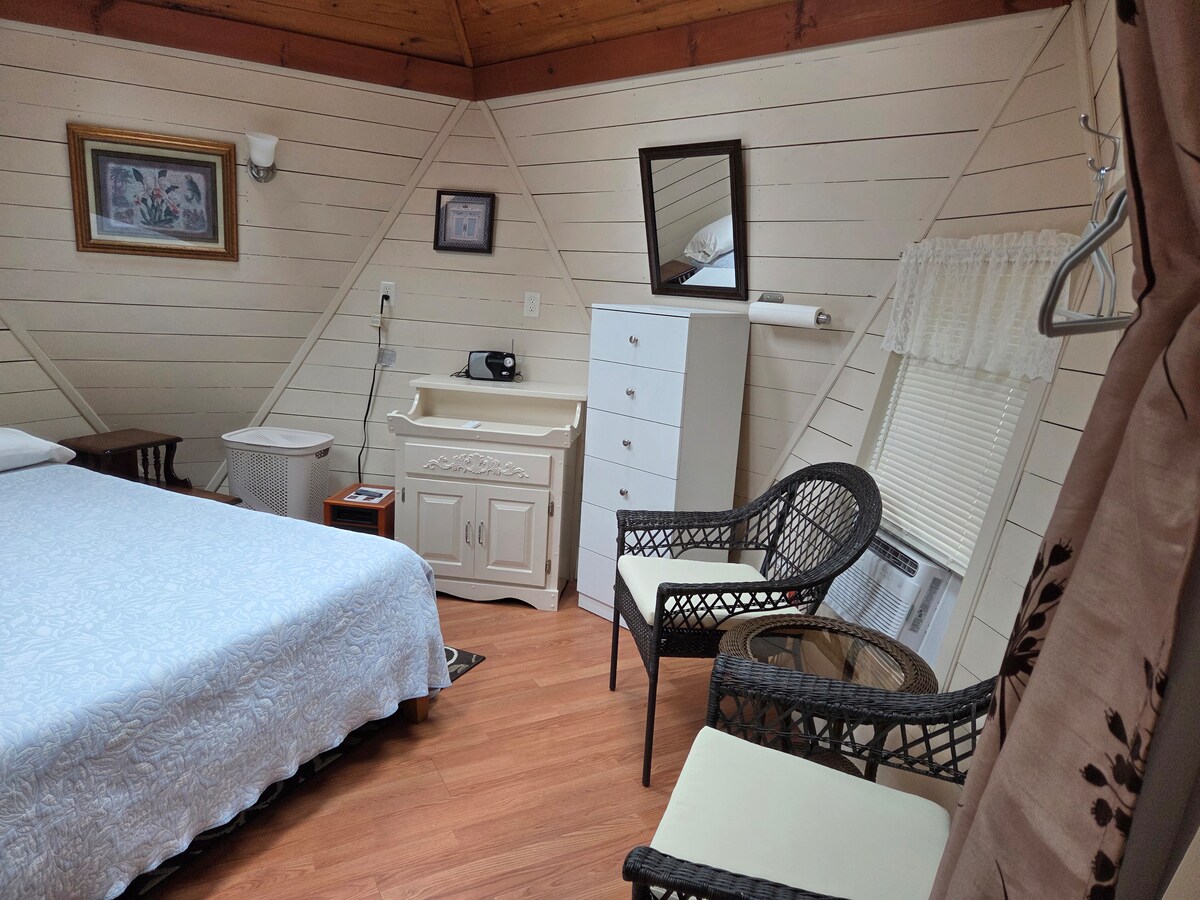 TIADA YURAN PEMBERSIHAN, TIADA YURAN TAMBAHAN UNTUK ANDA! Anda akan menemui kabin selesa yang damai ini terletak di antara pokok pain merah yang tinggi dan indah. Terletak di komuniti persendirian yang tenang di Eustis. Ruang ini sesuai untuk seorang atau pasangan. Kabin yang selesa ini terletak bersebelahan dengan rumah kami tetapi merupakan unit berdiri sendiri yang berasingan. Banyak yang ditawarkan dalam ruang kecil. Di luar terdapat pemanggang gas dan beranda berteduh dengan kerusi untuk dinikmati pada bulan-bulan yang lebih panas. Duduk dan nikmati persekitaran yang tenang atau buku yang bagus.