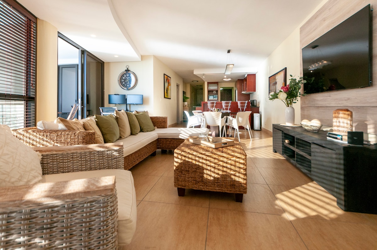 Percutian satu bilik tidur ini menjemput anda untuk menikmati cahaya semula jadi dan suasana pantai. Bangun pagi yang bermandikan cahaya matahari, teguk kopi di sudut bacaan anda yang selesa, dan dengar ombak yang menenangkan. Pantai bersebelahan hanya dalam jarak berjalan kaki singkat, menjadikannya ideal untuk pencinta matahari, penjaga cengkerang dan pencari luncur. Sama ada anda mencari percutian romantik, percutian yang damai, atau persekitaran bekerja dari rumah, unit ini menawarkan gabungan keselesaan dan lautan yang sempurna.