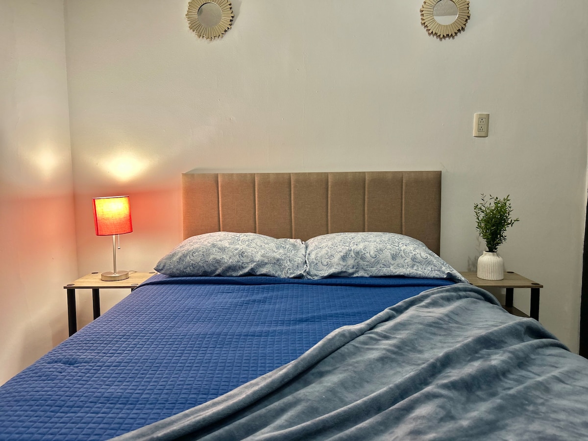Te encantará pasar tus días en este espacioso departamento con ubicación privilegiada y acogedora terraza privada. Agua purificada, café, snacks de cortesía y todo lo que necesitas para tener una estancia cómoda. Cerca de plazas comerciales, restaurantes, hospitales, super literalmente a unos pasos y más. Internet de alta velocidad, TV y área de trabajo. Te brindamos información turística y estacionamiento gratuito en calle. Encontrarás un gran lugar para descansar y disfrutar de la ciudad.
