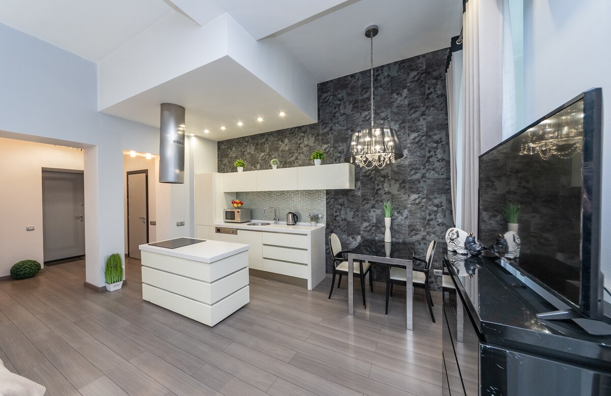 Apartmen ini terletak di tengah-tengah Kiev, berhampiran stesen metro "Independence Square". Apartmen ini sesuai untuk orang yang menghargai minimalisme dan keselesaan. Theinteriorof apartmen tidak penuh dengan unsur-unsur yang tidak perlu dan dibuat dalam trend moden. Gabungan tekstur yang berbeza ("kerja bata", kayu) kelihatan bergaya dan harmoni.
