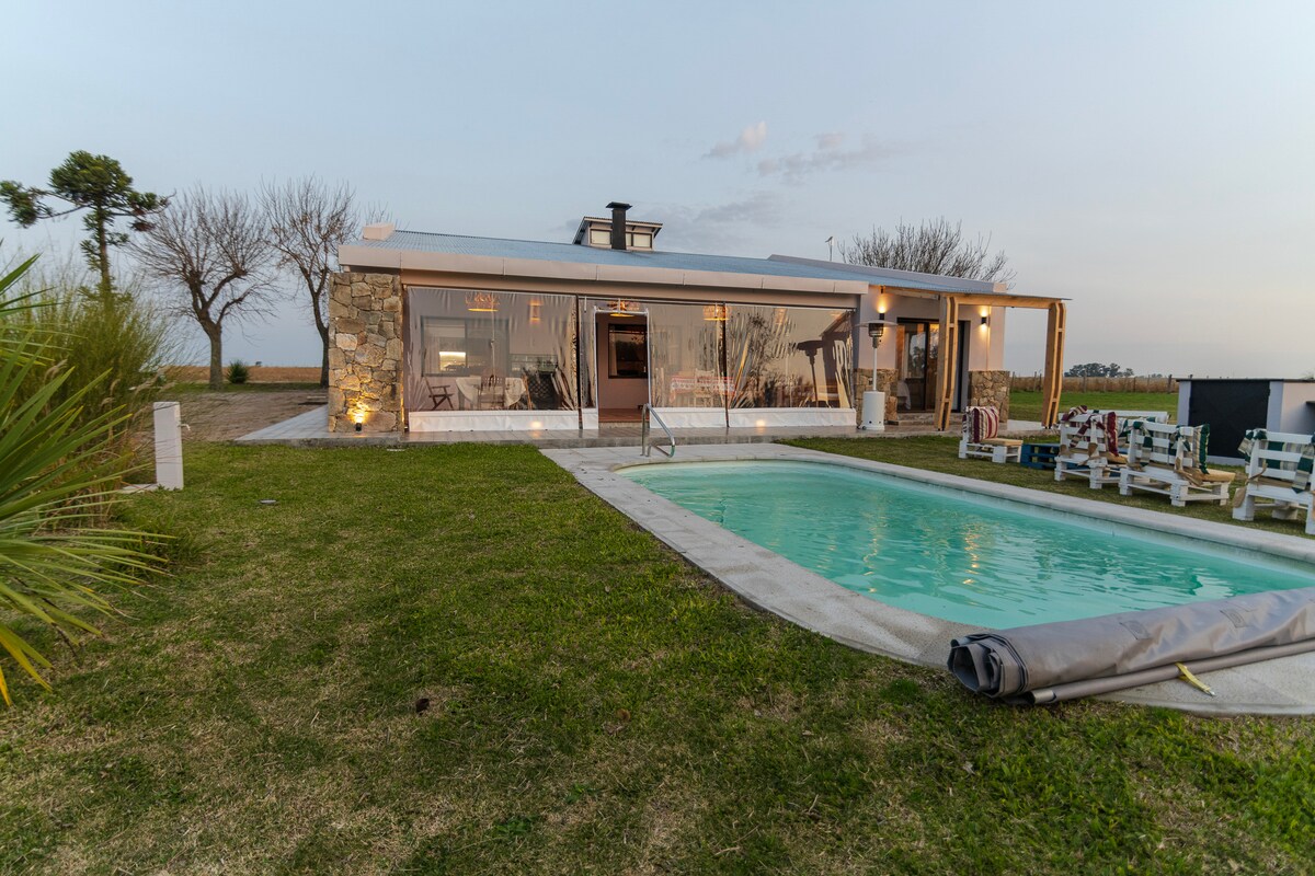Kabin terletak di kawasan luar bandar, Jabatan Colonia dan sempadan dengan Jabatan Soriano 10 kilometer dari Pueblo Agraciada. Ia berada dalam harta keluarga, 200 meter dari rumah utama tetapi dengan kebebasan dan privasi yang mencukupi. Dikelilingi kawasan desa, pokok, tumbuh-tumbuhan dan haiwan. Tawarkan hiking, kehidupan desa, pengalaman memerah susu, pengalaman birding, birding, matahari terbit yang menakjubkan, dan matahari terbenam. Sesuai untuk berehat dan menikmati ketenangan fikiran.