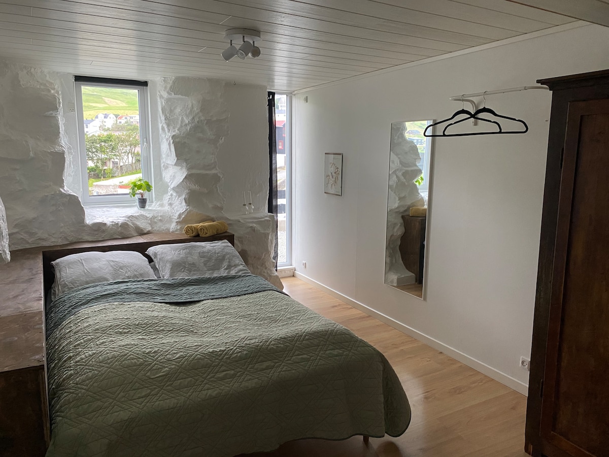 Enjoy a peaceful experience in this guesthouse in the old village. built in 2020, in Scandinavian style. 5 minute drive to the airport, 15 minute walk to the ferry to Mykines and 10 minute drive to Gásadalur. The local shop is right around the corner. bus-stop close by. the room comes with a small kitchen, bed is 140x200 cm, bathroom with shower and rest area. and there is possible at park a small to normal car, right outside.