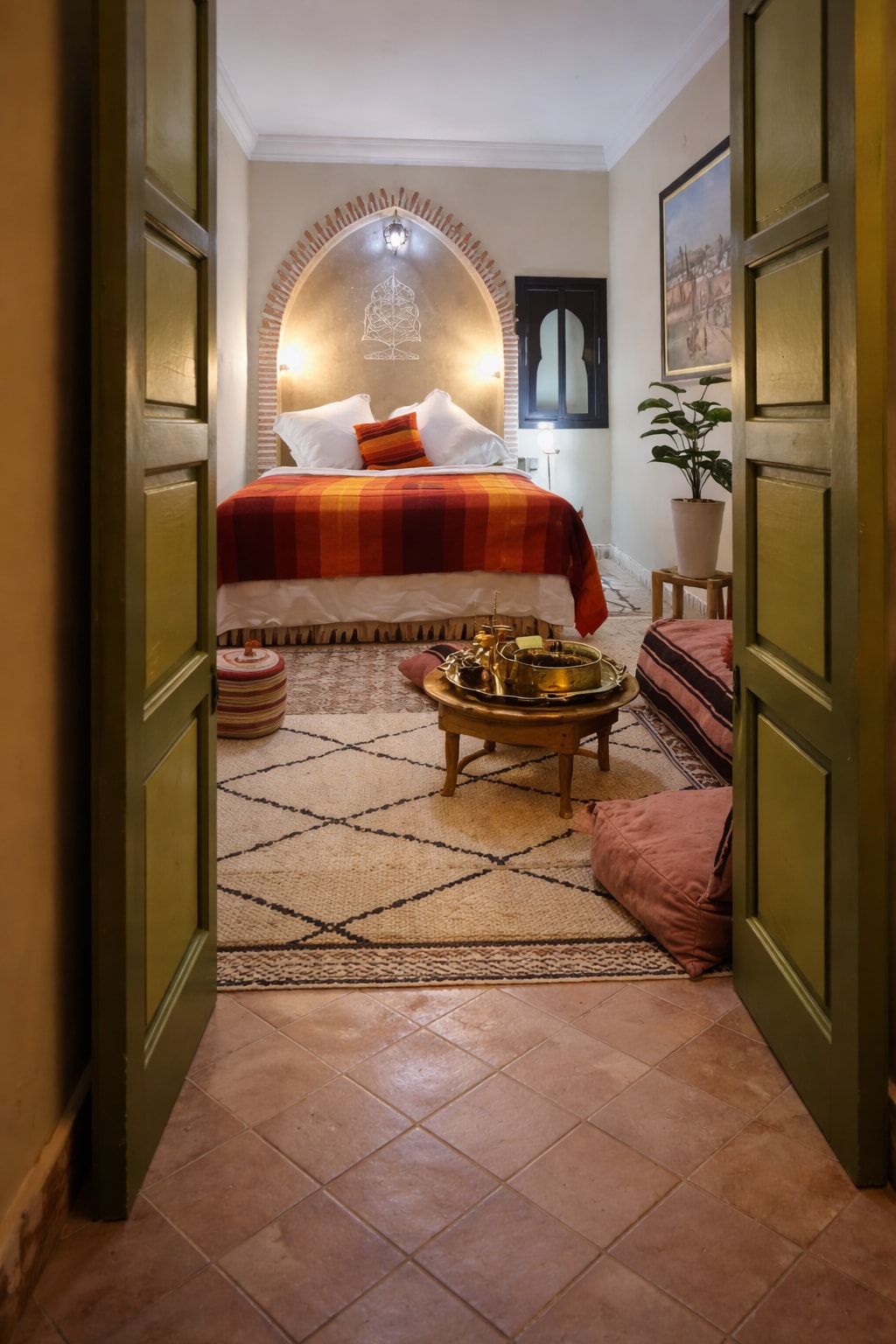 Riad kami menonjol kerana pemandangan lautnya yang menakjubkan yang menawarkan matahari terbenam yang tidak dapat dilupakan dan suasananya yang menggabungkan tradisi dan kemodenan. Setiap perincian, daripada seni bina hingga reka bentuk dalaman, mencerminkan intipati Maghribi yang menawarkan pengalaman yang tulen dan tidak dapat dilupakan untuk setiap pelawat. Sama ada anda menikmati keenakan masakan Maghribi yang lazat atau meneroka pasar-pasar yang sibuk di medina berhampiran, Riad kami menawarkan pengalaman yang unik.