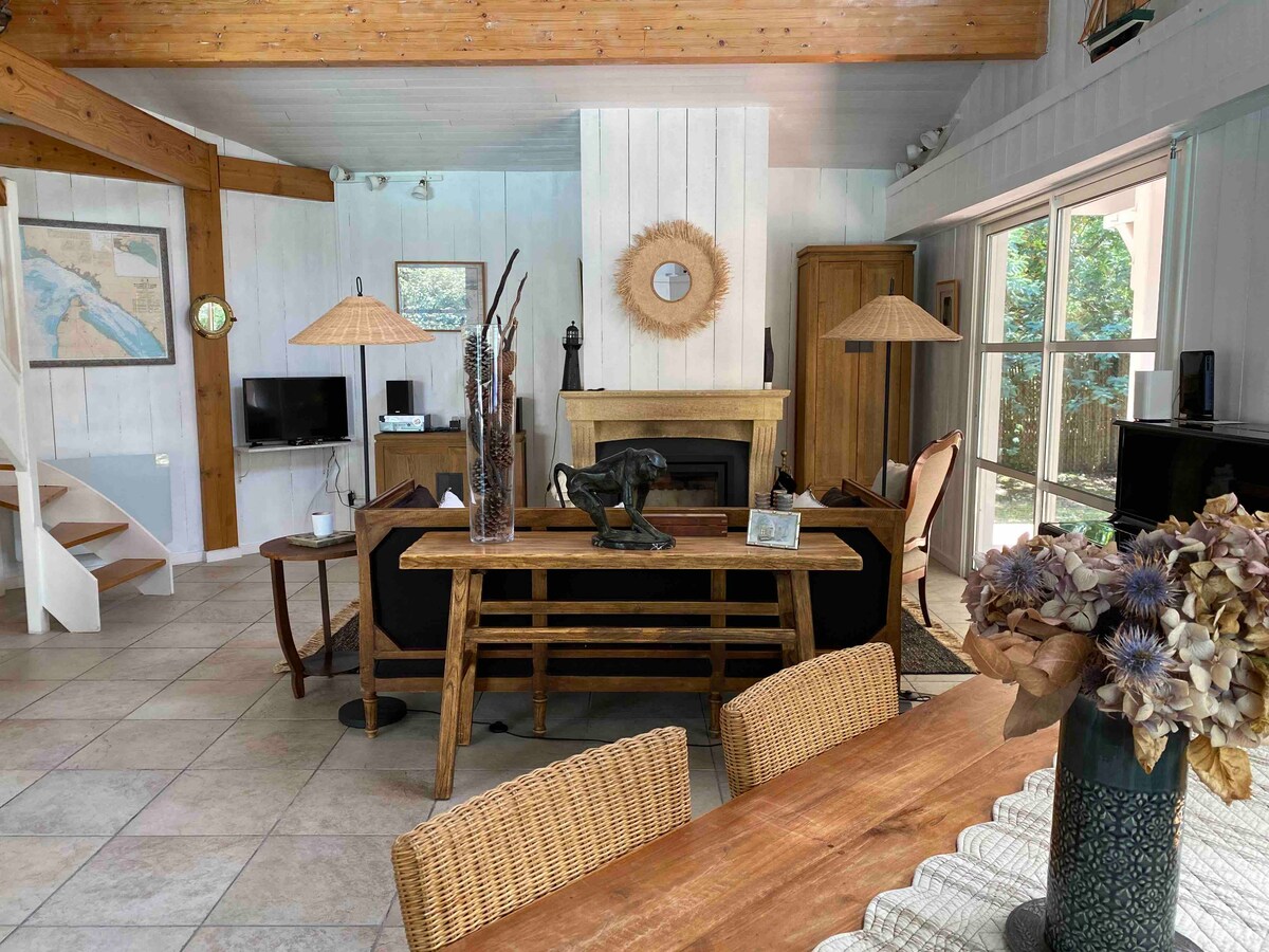 Rumah berhutan sepenuhnya di atas tanah berhutan yang terletak di pantai Amélie di pinggir oecan besar yang dipisahkan oleh bukit pasir yang diklasifikasikan sebagai tapak semula jadi, berhampiran dengan pusat bandar Soulac sur Mer. Di kampung kecil Amélie, boleh diakses dengan berjalan kaki atau di tepi laluan basikal, anda boleh mendapatkan restoran, akhbar tembakau, kedai roti, kedai runcit. Rumah ini termasuk dua bilik tidur dan mezzanine seluas 20 m2 yang menghadap ruang tamu yang boleh menampung 3 katil. Lokasi ideal untuk pencinta luncur ombak