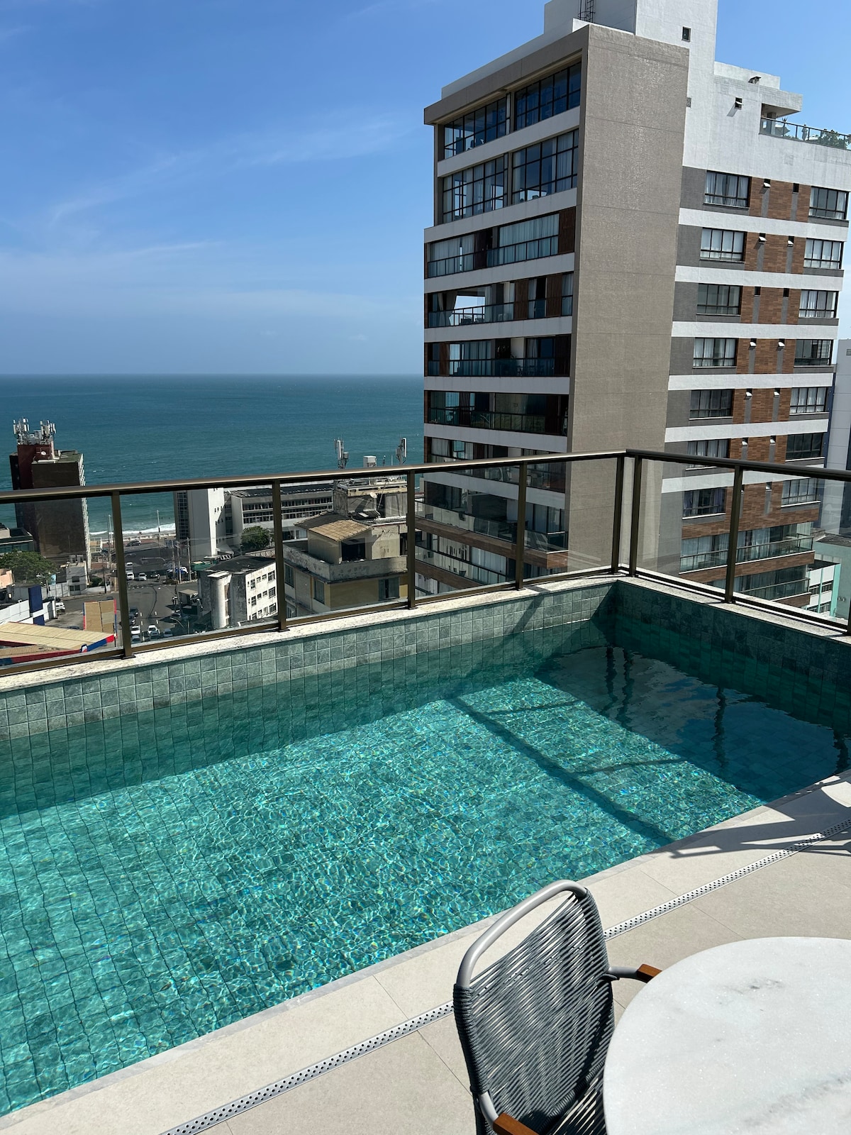 Desfrute de uma estadia inesquecível com vista para o mar, varanda gourmet com churrasqueira e cervejeira. Localização privilegiada no bairro mais vibrante de Salvador: o Rio Vermelho. Localizado a menos de 5 min caminhando da praia do Buracão e a 1km do circuito Carnaval. Climatizado com cozinha completa ideal para casais, casais com filho e viajantes solo que buscam uma experiência completa. Infraestrutura completa com piscina no rooftop e deslumbrante vista mar, academia moderna e coworking.