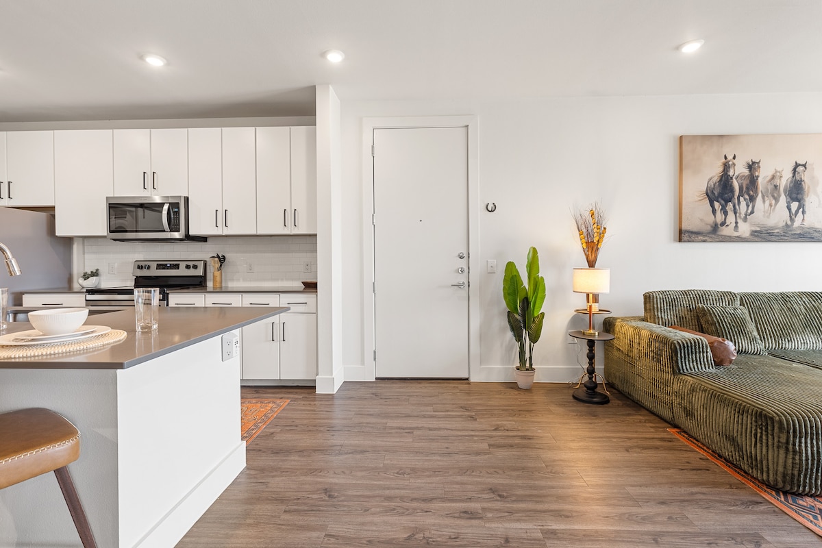 Selamat datang ke percutian anda yang tenang di South Austin! Apartmen seluas 800 kaki persegi yang berperabot cantik ini menawarkan segala-galanya untuk penginapan yang selesa. Nikmati ruang tamu berkonsep terbuka dengan sofa mewah, dan TV pintar untuk penstriman. Meja bergaya dengan monitor memastikan produktiviti untuk kerja jarak jauh. Dapur ini menampilkan peralatan keluli tahan karat, dan persediaan serba lengkap yang menjadikan memasak mudah. Tempat letak kereta percuma di tapak dan kemudahan termasuk WiFi berkelajuan tinggi, TV Pintar, Mesin basuh pinggan mangkuk, dan mesin basuh/pengering.