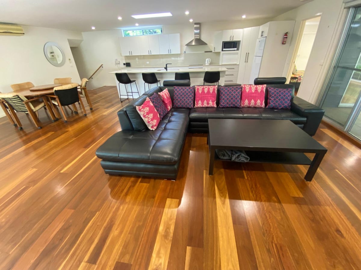 Terletak di sudut tenang kampung Hyams Beach, rumah kami sesuai untuk percutian keluarga yang santai atau pasangan. Baru selesai pengubahsuaian penuh dengan dapur baru, ac/haba, 2 bilik mandi, dan dek tertutup. Kagumi pemandangan laut dan belukar yang menakjubkan, beberapa langkah dari pantai dan laluan taman negara. Sesuai untuk berehat dan mengembara. Nikmati keselesaan seperti WiFi NBN, Netflix, BBQ dan suasana angin laut. Alami gabungan ketenangan tepi pantai dan keindahan semula jadi yang sempurna dalam percutian kami yang serba lengkap.