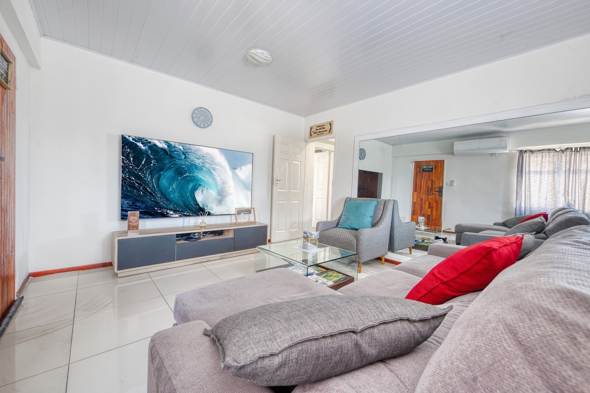 Pergi ke White Rose Villa, syurga tiga bilik tidur yang tenang yang menggabungkan keselesaan dan gaya. Terletak beberapa minit dari Airport Junction Mall, CBD dan lapangan terbang, ia sesuai untuk perniagaan atau percutian. Bersantai di ruang istirahat yang selesa dengan TV Pintar, Netflix dan Wi-Fi Starlink, atau masak di dapur yang lengkap. Langkah keluar ke kolam renang, patio, dan kawasan braai; sesuai untuk kopi matahari terbit atau ketawa matahari terbenam. Nikmati tempat letak kereta yang selamat, penggera 24 jam dan pembersihan profesional untuk penginapan yang lebih panjang.