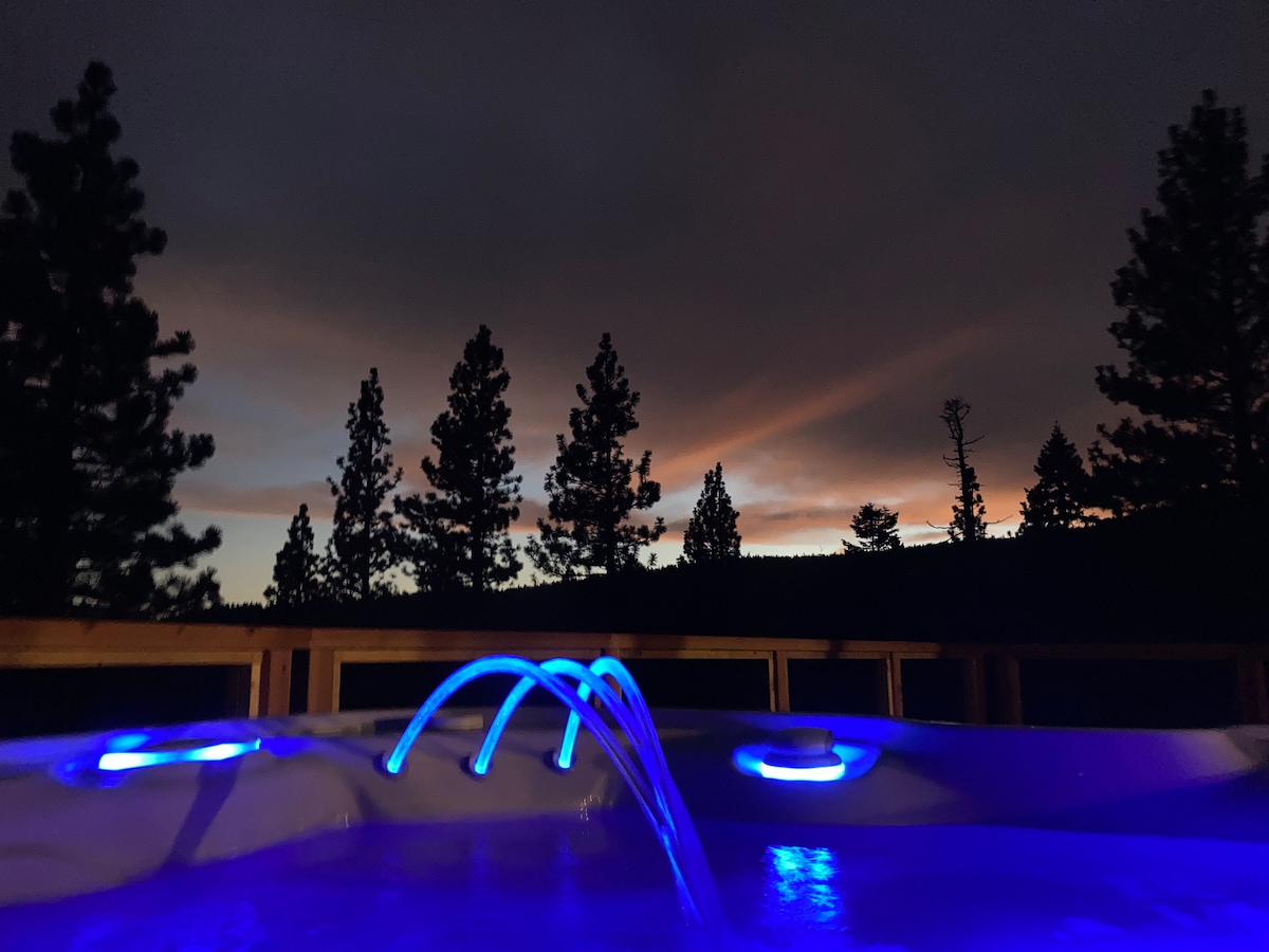 Bersantai di dalam tab mandi air panas yang bersih berkilauan di bawah bintang-bintang dan berehat di patio peribadi anda sendiri. Tab mandi air panas dibuka sepanjang tahun tetapi Patio dan BBQ tidak tersedia pada musim sejuk Dec-Mar kerana salji. (Tab mandi air panas tenang jam 10-8 Tiada muzik dalam tab mandi air panas) Ini adalah tempat percutian yang selesa dan bersih di tingkat BAWAH (TINGKAT BAWAH RUMAH KAMI) dengan pintu masuk persendirian. Di sebelah laluan berbatu-batu, 15 minit dari pantai Tahoe dan ski. Bersantai di bawah selimut yang selesa dan tertidur sambil mendengar angin di dalam pain.