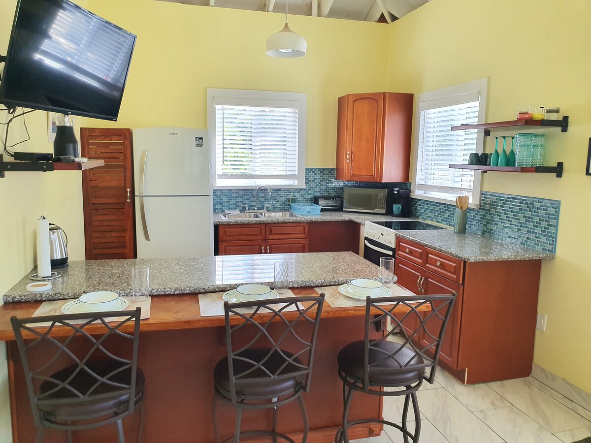 Rumah 2 katil, 1 bilik mandi yang diubahsuai dengan indah ini terletak di atas air Caribbean yang jernih dan hanya beberapa langkah dari pantai Ten Bay. Bilik tidur utama mempunyai katil queen dan pemandangan yang menakjubkan. Katil tetamu mempunyai 2 katil berkembar yang boleh ditukar kepada katil king menjadikannya pilihan yang sesuai untuk satu atau dua pasangan. Dapur berperabot lengkap mempunyai pelbagai gas gourmet untuk mereka yang suka memasak. Lengkap dengan kuasa solar sandaran, sistem R/O, A/C, wifi, TV, gril, kayak dan pelbagai peralatan pantai, datang berehat dan nikmati syurga!