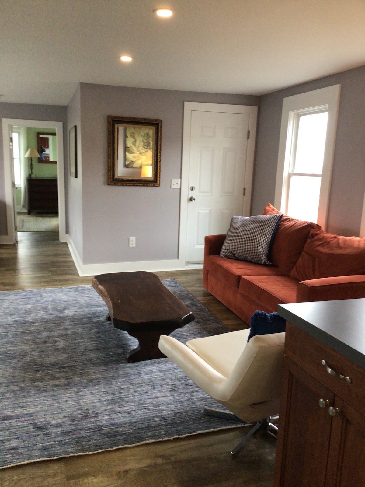 Apartmen tingkat satu yang mewah ini dipenuhi dengan cahaya matahari sepanjang hari dan pada malam yang sejuk pendiangan gas memberikan suasana yang hangat. Kami rasa anda akan suka tenggelam ke dalam katil saiz king yang ditutup dengan baldu pada waktu malam dan melangkah ke pancuran mandi yang luas yang termasuk kepala pancuran hujan bersama-sama dengan pegang tangan ... gunakan salah satu atau kedua-duanya, sesuka hati anda! Dapur ini dilengkapi dengan permukaan kaunter kuarza, kabinet ceri yang kukuh dan peralatan keluli tahan karat mewah.