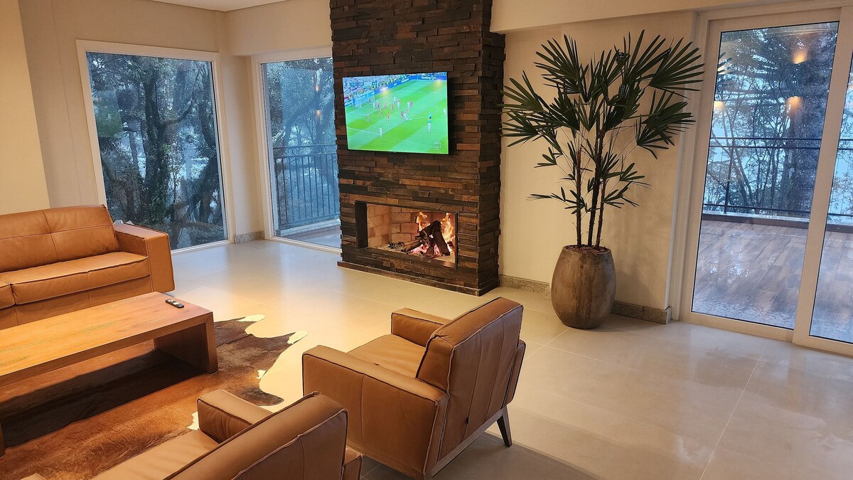 Alami Curitiba pada tahap tinggi di penthouse dupleks ini di Champagnat, dengan pemandangan panorama langit dan Taman Barigui. Bilik superior dengan TV 75” gergasi untuk bermain PS5 yang mendalam atau menonton filem berkualiti tinggi di atas katil sofa besar. Dapur, barbeku di dalam apartmen, ruang tamu tingkat bawah dengan TV 60" dan sofa kulit. Suite dengan katil queen! Kolam infiniti di atas bumbung, terletak hanya beberapa minit dari Taman Angeloni dan Barigui. Dua ruang meletak kereta berteduh yang percuma sepenuhnya!