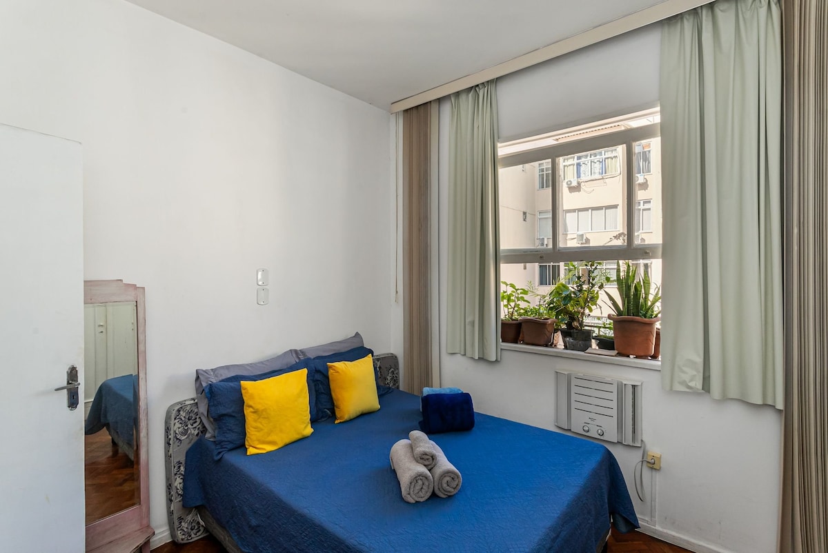 Apartmen. Bangunan yang tenang, menawan dan teratur, penjaga pintu hingga 8:00 malam. Satu minit dari pantai Copacabana berjalan kaki. Commerce, Restaurants, Pharmacies, subway, bus, everything nearby. Tv, internet percuma, penyaman udara, langsir gelap, kipas, dapur yang dilengkapi dengan semua peralatan yang diperlukan. Selesa untuk sehingga dua orang. ID bergambar mesti dihantar 24:00 jam sebelum daftar masuk kepada hos.