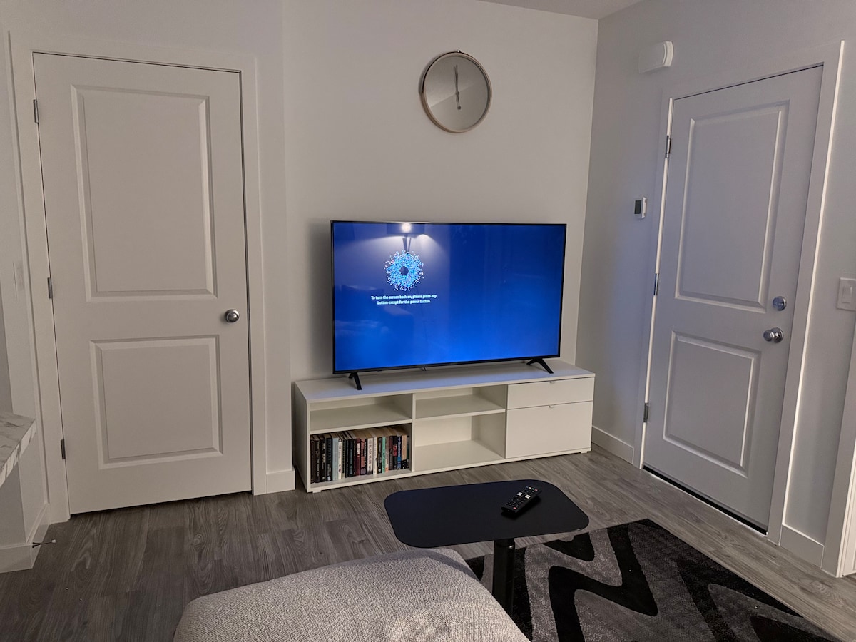 This modern 1-bedroom unit offers a private entrance, full kitchen, in-suite laundry, a new queen bed, and sofa bed. Enjoy early and self-check-in, high-speed Wi-Fi, cable TV, streaming on Netflix, Disney and Prime Video. Includes street parking & a private patio. Conveniently located near South Health Campus, Seton shops, YMCA, Cineplex. Whether you're headed downtown, visiting Spruce Meadows (10 min away), or planning a day trip to the mountains, this is the perfect base for your Calgary stay.