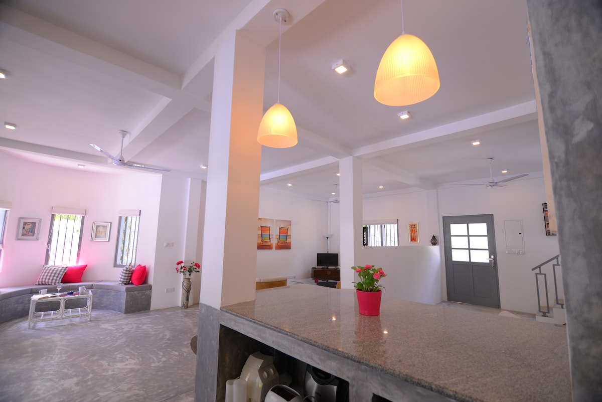 Terletak di dalam kampung tropika, vila kami menawarkan keselesaan dan ketenangan yang lengkap sebagai rumah anda yang jauh dari rumah. Nikmati taman tropika yang indah dan subur, pergi berenang atau meluncur di teluk hanya 150 meter jauhnya. Vila kita adalah tempat yang sempurna apabila anda ingin kepompong diri anda untuk masa yang menyegarkan. Pusat Ayurveda kami terletak bersebelahan. Villa dilengkapi dengan router LTE. Kami berada di kawasan yang sunyi tanpa kesesakan lalu lintas.