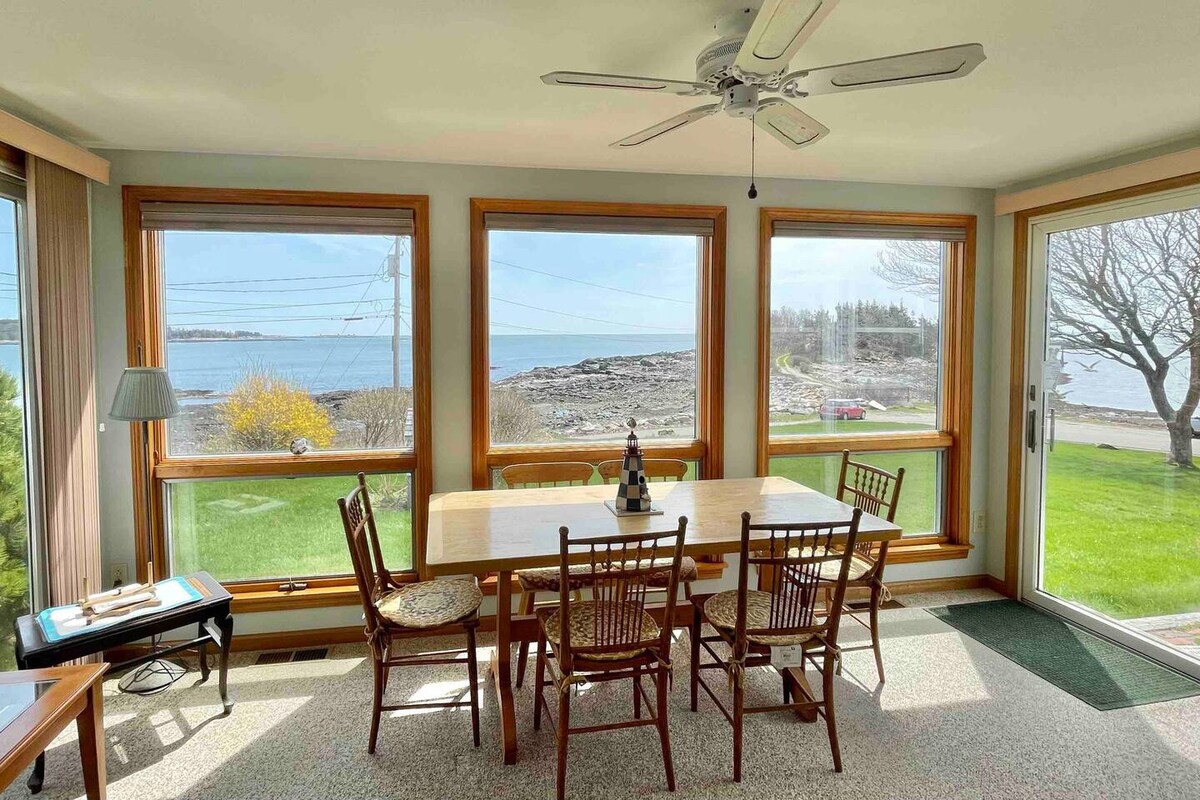 Kotej Maine yang Sempurna! Terletak di tepi laut, dipelihara dengan teliti dengan butiran tradisional. Pelan lantai terbuka yang menawan, dengan dinding tingkap ke laut. Dek balutan besar yang cerah dan beranda skrin mewujudkan ruang luar yang indah untuk dinikmati. Sesuai untuk mendengar ombak dan melihat udang kara menarik perangkap mereka. Siling katedral dan reka bentuk Scandinavia memberikan suasana eksklusif kepada kotej ini. Tangga lembut menuju ke dok air dalam persendirian untuk semua jenis bot.